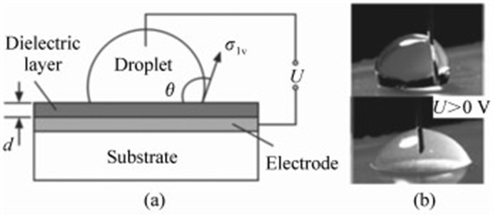 电润湿技术(EWOD)通过改变液滴与固体表面间的接触角实现曲率调控,是目前最成熟的液态镜头技术。具有响应速度快(毫秒级)、功耗低、重复性好的特点,已广泛应用于工业相机和自动化检测设备。