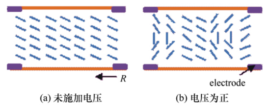 液晶型液态镜头利用电场控制液晶分子取向,通过改变等效折射率分布实现调焦。这种技术驱动电压低、易于微型化,在便携式检测设备中具有明显优势。但是该类镜头驱动电压较低,受到电场强度和均匀性的限制,难以实现近焦成像,并且容易造成图像的光学失真。